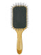 This paddle brush features rounded nylon pins set into a highly cushioned natural rubber base, providing gentle, comfortable contact with the scalp.