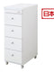 The top and front panels use a polyester decorative finish that is resistant to dirt and easy to clean. With casters, it can be moved smoothly when needed, and the drawers include stoppers to help prevent accidental drop-out. A front-facing single power outlet adds extra convenience for plugging in small devices nearby.